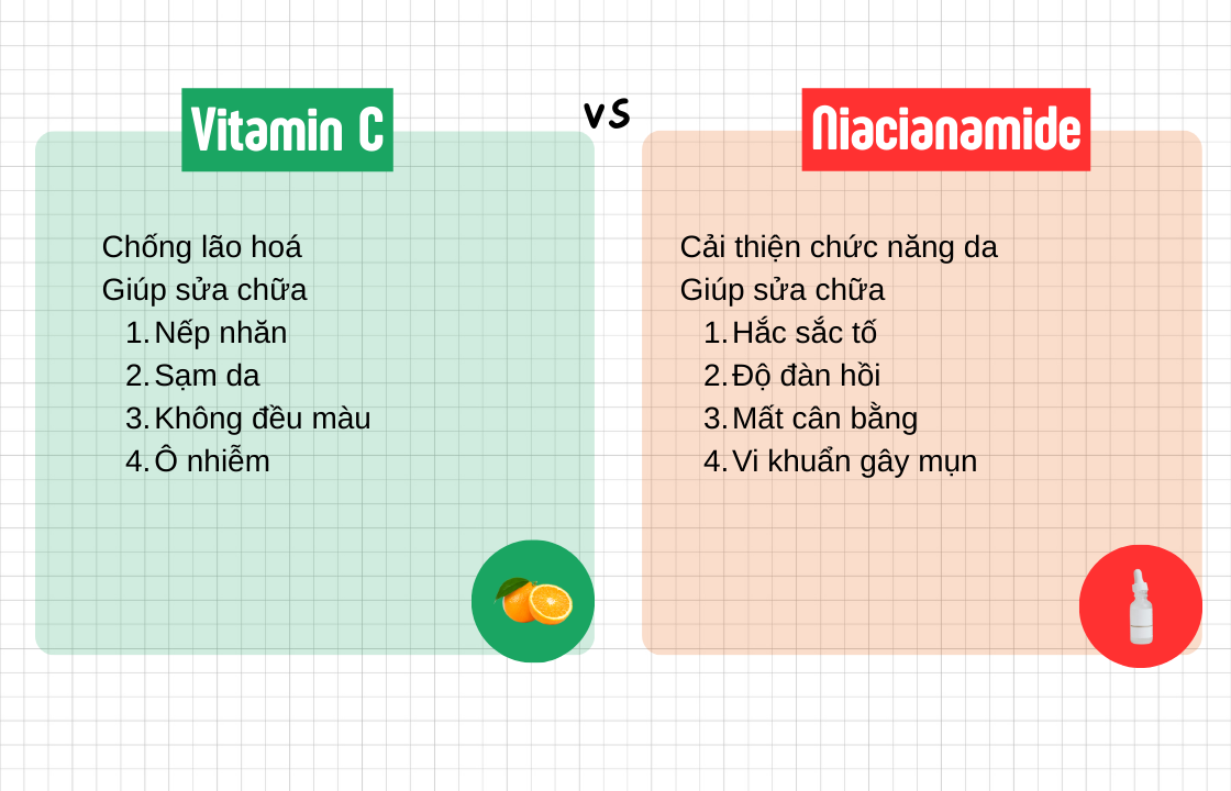 Vitamin C & Niacinamide – Khác nhau như thế nào?